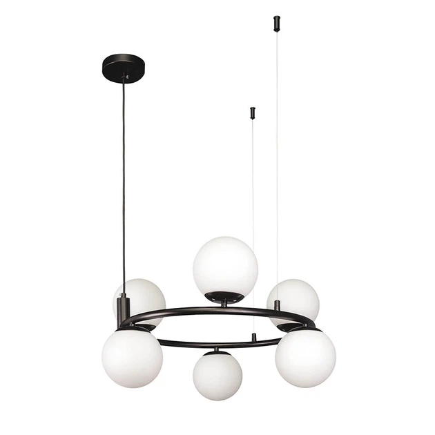 Підвісна люстра Levistella на шість сферичних плафонів під лампу Е27 чорна IP20 7521011-6 BK+WH