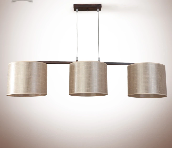 Люстра 3-х лампова з блискучим бежевим абажуром на тросах для спальні, кухні, дитячої 19333-7