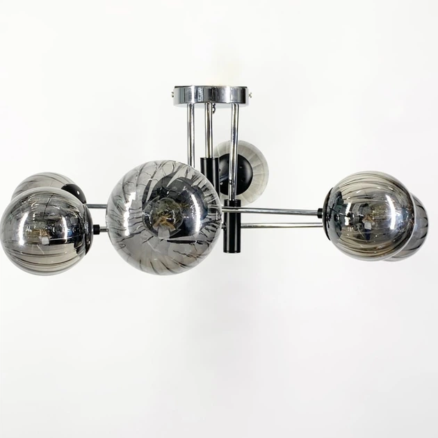 Люстра стельова в хромованому корпусі на 6 графітових плафонів 70 см