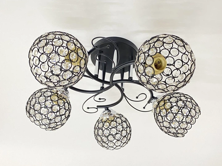 Люстра стельова на 5 плафонів 2348C/5 Чорний+Хром