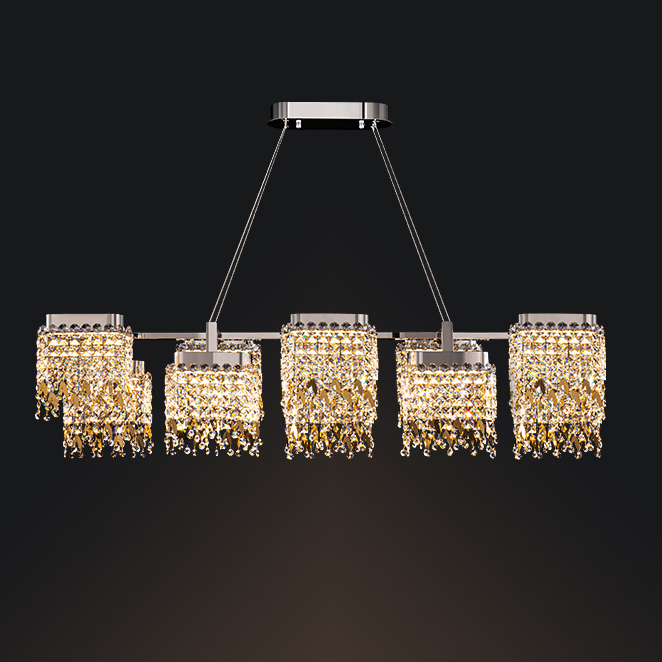 Підвісний світильник FORSETE LONG L120 – це сучасний та вишуканий елемент освітлення, створений брендом DEPRIMO з Китаю. Ширина світильника складає 1200 мм, а висота – 350 мм. Він оснащений LED лампами, які входять до комплекту постачання. Арматура світильника виконана з міцної сталі з покриттям хромованого кольору, що надає йому елегантності та стильності. Плафони виготовлені з якісного