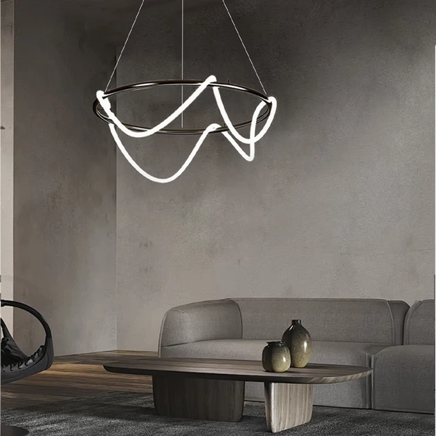Чорна кільцева люстра з гнучкою LED стрічкою 95 см (кільце 60 см) | Арт. JU 22N-600 BK | Line F