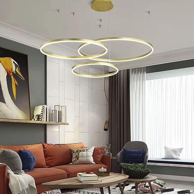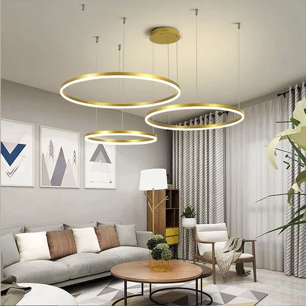 Світлодіодна люстра на три кільця 60+50+40 см у латунному каркасі