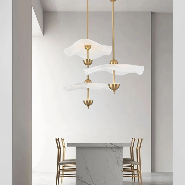 Латунний світильник із білим хвилястим плафоном 50 см | Line F | Арт. SGA3-500-1 AB