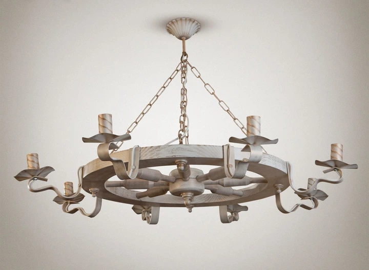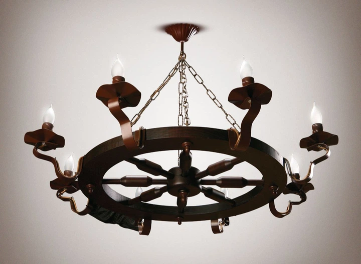 Люстра колесо з дерева, 8-ми ріжкова 581
