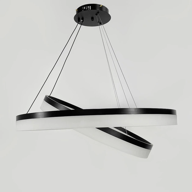 Сучасна люстра на два кільця 80+60 см у чорному каркасі