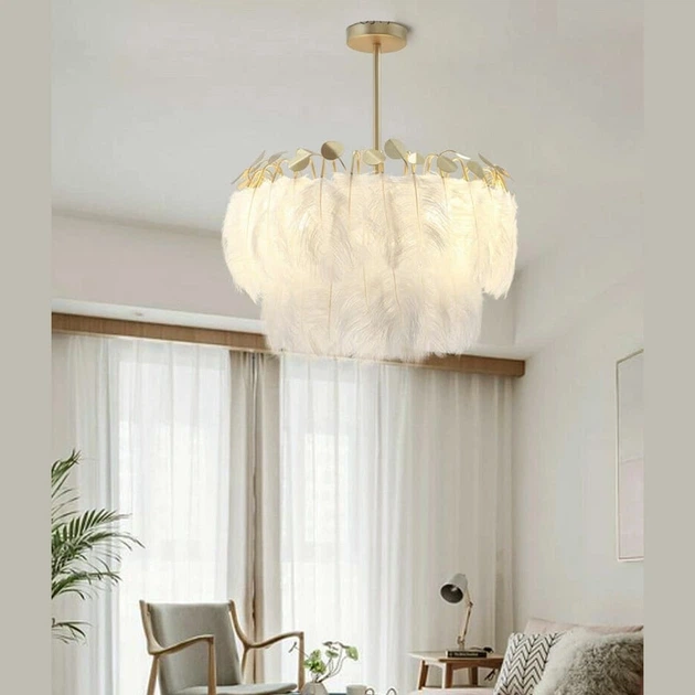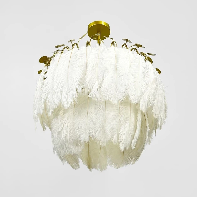Розкішна золота люстра з пір'ям 55 см | Line F | Арт. AS147-550 WT