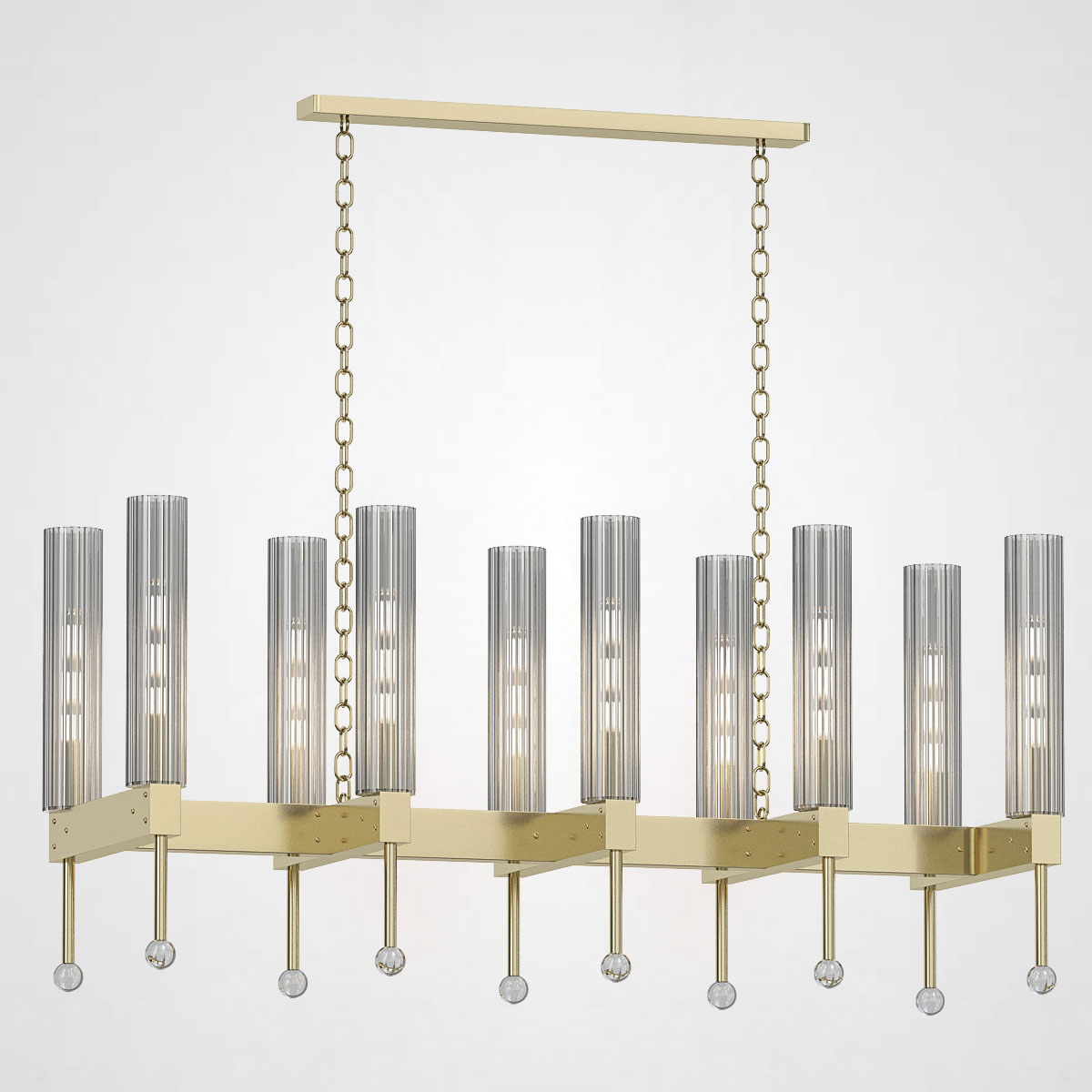50 від бренду DEPRIMO є чудовим доповненням для сучасних інтер'єрів у стилі Модерн та Арт-Деко. Виготовлена в Китаї, ця люстра поєднує в собі елегантність та функціональність. Складена із семи кришталевих плафонів у прозорому кольорі та латунній арматурі, ця підвісна люстра привносить нотку розкоші в будь-яке приміщення. Кришталеві плафони чудово
