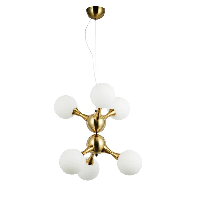 Люстра молекула бронза підвісна на шість білих скляних плафонів Levistella 7529816-6 BRZ+WH