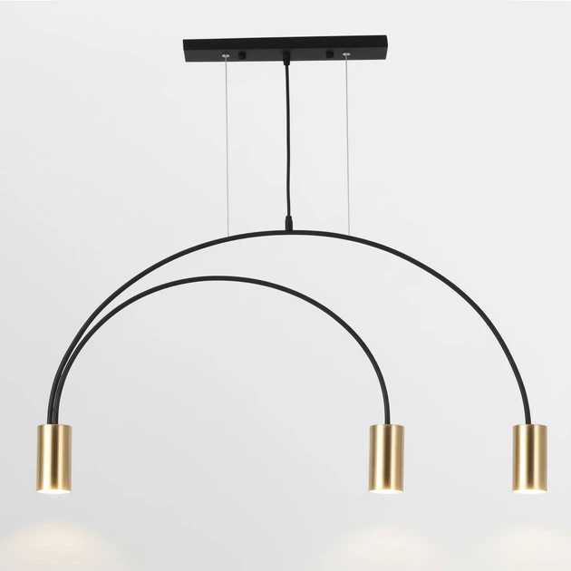 Люстра підвісна мінімалістична дугоподібна на 3 плафона золотого кольору