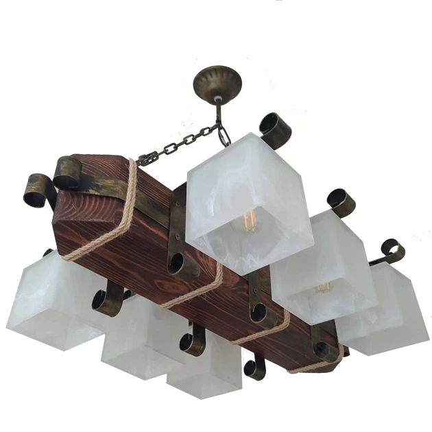 Люстра підвісна дерев'яна Light House LPR-20115/6P колір коричневий + бронза, білий плафон