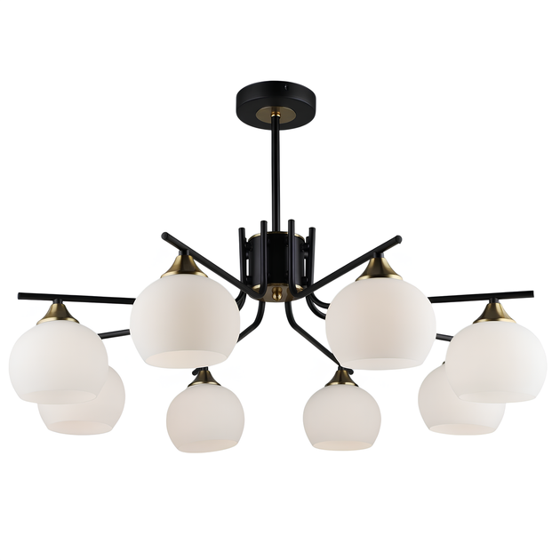 Люстра стельова Valeso N6616/8 з вісьмома круглими білими плафонами під лампи E27 на чорно-мідному корпусі