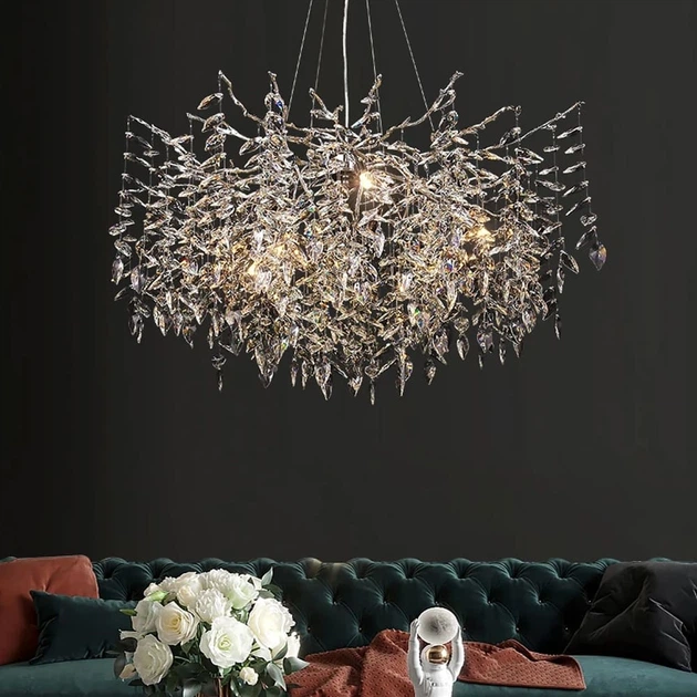 Вишукана срібна люстра DIAMINA з хрустальним камінням 80 см | Арт. 33007-760 CH | Line F