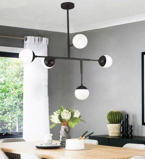 Люстра стельова підвісна на 5 ламп AOC17/5-bk-wh Чорний 55-105х52х69 см.