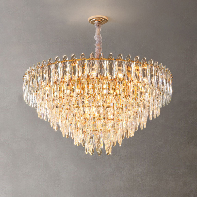Підвісна люстра BERTOLDA B COMBO D50+90+60+100+70 від бренду DEPRIMO - це елегантний та стильний освітлювальний пристрій, який ідеально підходить для створення розкішної атмосфери у вітальні, готелі, шоу-румі, студії, холі чи лаунж-зоні. Ця модерно-арт-деко люстра має п'ять кришталевих плафонів різної ширини, кожен розміром 500, 900, 600, 1000 та 700 мм, та висоту 3600 мм, що робить її ідеальним доповненням до
