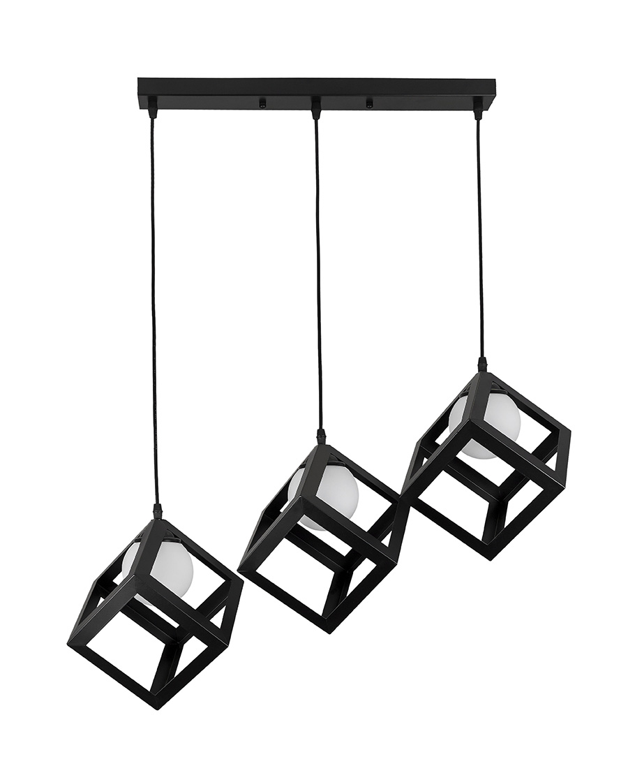 Розмір металевого плафона 160х160мм Розмір скляного плафона 100мм Висота підвісу від 250мм до 1000мм Стельова основа: планка 500мм Тип цоколя: G9 Колір: чорний/білий Матеріал: метал/скло