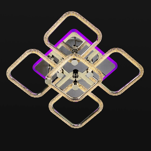 Люстра світлодіодна F-Led світильник стельовий Кришталевий квадрат RGB Crome 192W З пультом керування SmartLed 2024/14