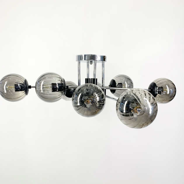 Люстра стельова в хромованому корпусі на 8 графітових плафонів 85 см