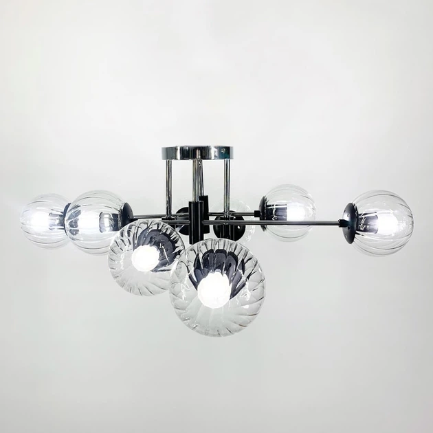 Люстра стельова в хромованому корпусі на 8 прозорих плафонів 85 см