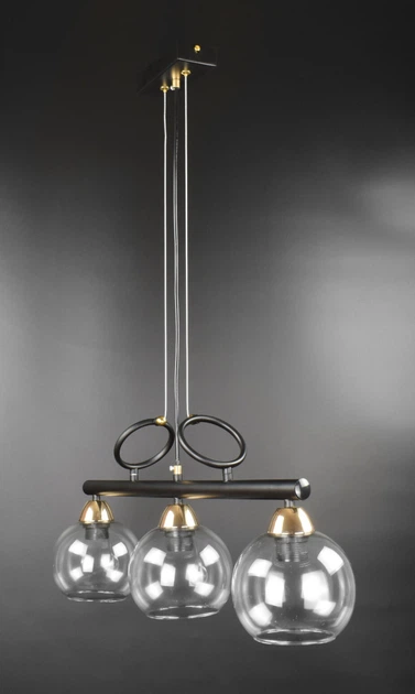 Люстра стельова підвісна на 3 лампочки YQ307/3-ab-bk-cl Чорний 40-190х15х65 см.