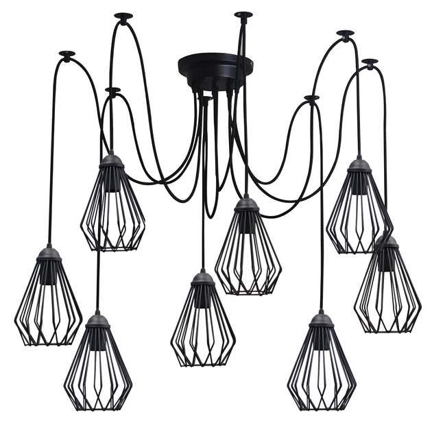 Підвісний світильник стельовий 100lamp Loft Е-27 метал, чорний, 7 плафонів (NL 05371/7 spider)