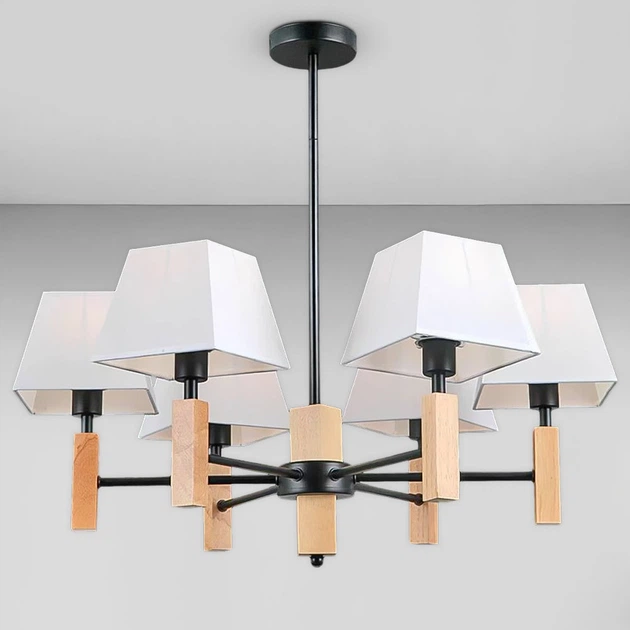 Стельова люстра з абажурами Light House SRS-19949-6 чорна, білий абажур