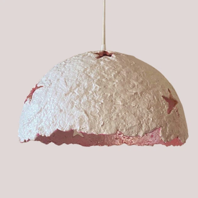 Люстра підвісна ручної роботи Зоря D30 пап’є-маше світлодіодна (LED) E27 20Вт рожево-перламутрова біла