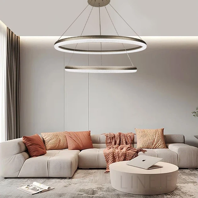 LED люстра підвісна у подвійному кільцевому корпусі 65+83 см | Line F | Арт. MJ342-800+600 Ice Flower Silver