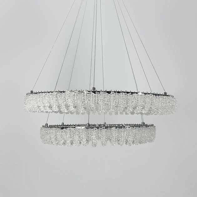 Кільцева кришталева люстра у хромі на 2 яруси 80+60 см | Line F | Арт. 33038-800+600 CH
