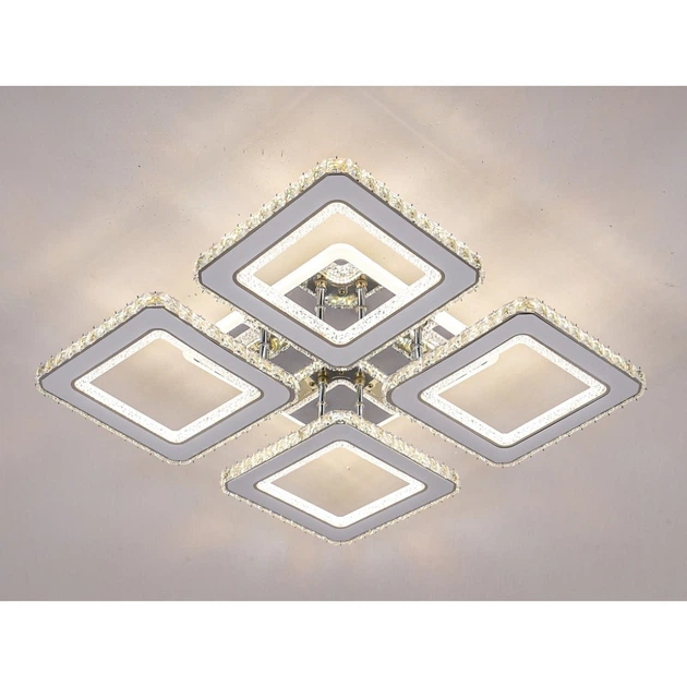 Люстра світлодіодна F-Led світильник стельовий Кришталеві квадрати RGB Crome 256 W З пультом керування SmartLed 2024/16