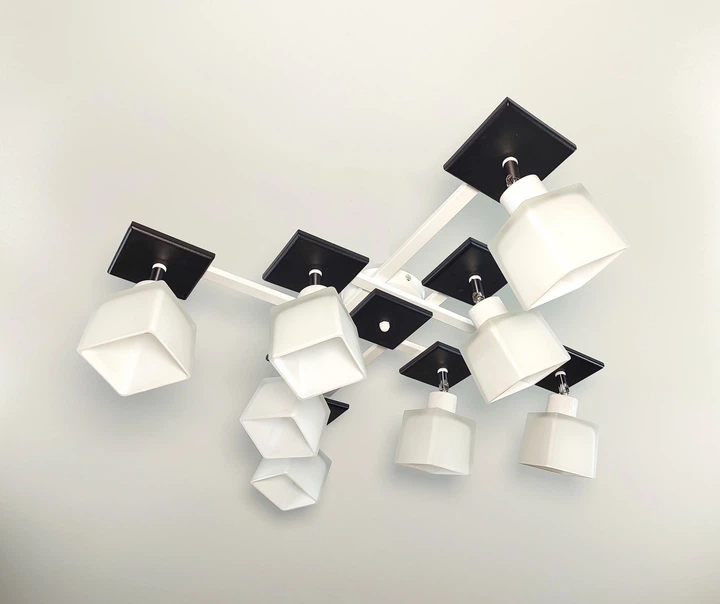Люстра потолочна Оскар/8Р біла чорна на вісім поворотних плафонів