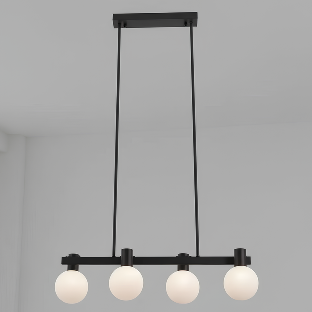Люстра підвісна Valeso BC84006-4 BK на 4 кулясті білих плафони під лампи E14 чорний корпус