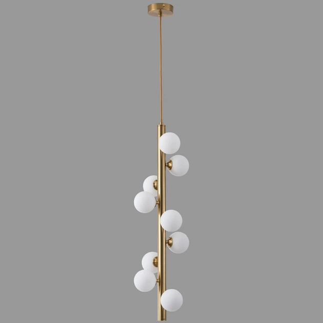 Підвісний бронзовий світильник на 9 лампи з 8см плафонами (88-P66645-9 AB+WH)