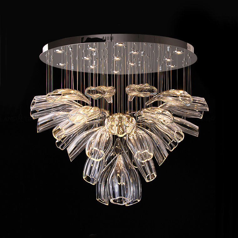 Підвісна люстра ZANDER D80 - сучасний та стильний освітлювальний пристрій, створений брендом DEPRIMO у Китаї. Поєднання сучасного стилю та елементів флористики робить її чудовим вибором для інтер'єру вашої вітальні, готелю, шоу-руму, студії, холу або лаунж-зони. Люстра має ширину 800 мм та висоту 660 мм, що забезпечує достатнє освітлення та створює вражаючий вигляд. Плафони виконані зі скла