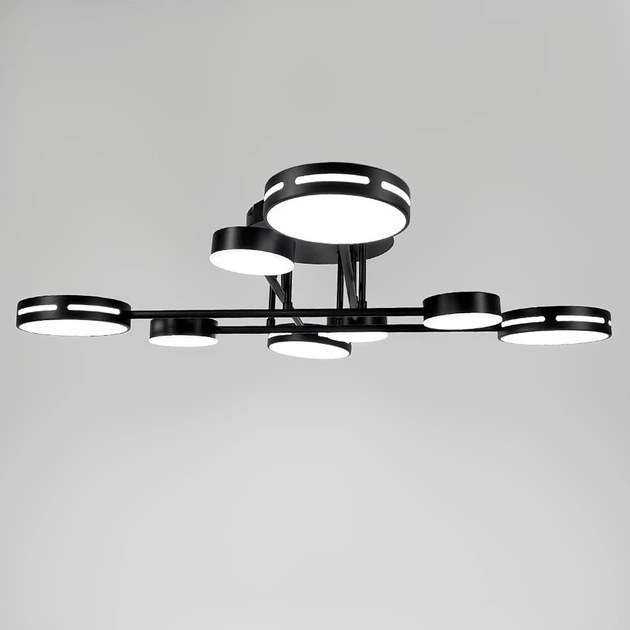 Чорна стельова люстра на 4+4 світлових кругів 80 см