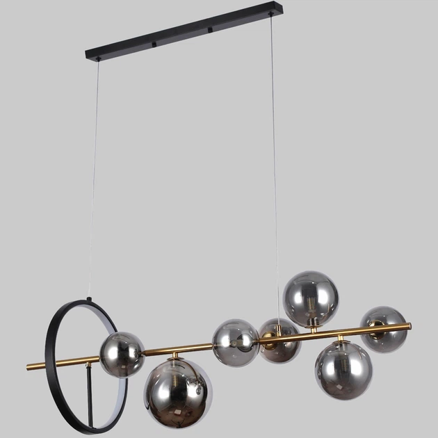 Підвісна люстра з LED-кільцем Levistella на сім димчастих плафонів під лампу G9 IP20 918LP267-7 DDG+BK