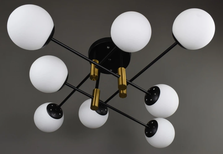 Люстра стельова на 8 лампочок 28253 Чорний, латунь 26х82х82 см.
