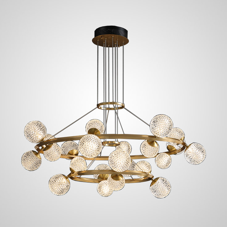 Підвісна люстра ABEL A D80 D100 - це сучасний освітлювальний пристрій, створений відомим брендом DEPRIMO. Виробляється у Китаї. Люстра доступна в трьох розмірах: 800 мм, 1000 мм та 1200 мм. Вона оснащена світлодіодними лампами, що входять до комплекту. Колір плафонів та арматури - латунь. Плафони виготовлені із міцного акрилу, а основа із металу. Люстра має три плафони і може розміщуватись на стелі.