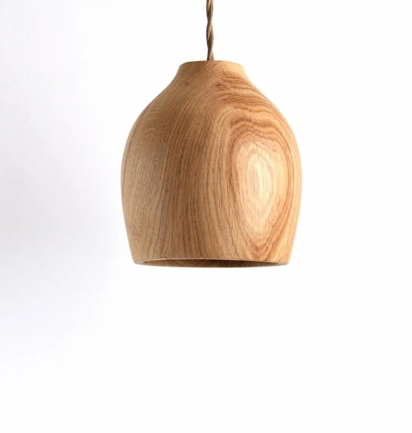 Дерев'яна люстра підвісна з дуба ручної роботи, діаметр 17 см, висота 18 см, світла (1195)
