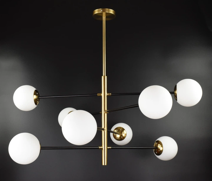 Світлодіодна стельова люстра 91W Sirius B N4543/6 BK+FGD з кулястими плафонами 3000-6500К каркас у чорно-золотому кольорі