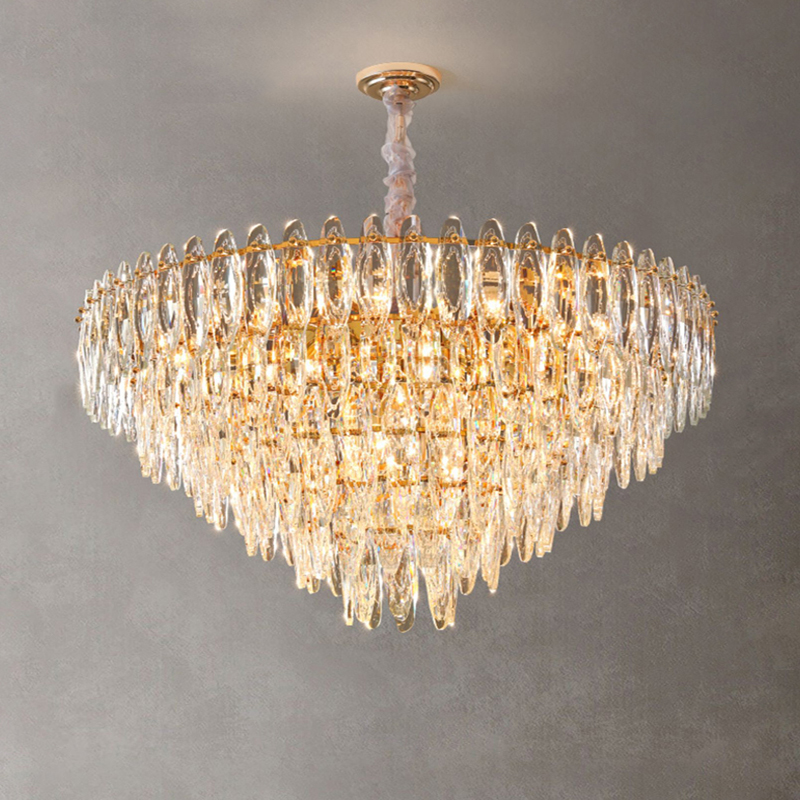 70 від бренду DEPRIMO – це елегантний та стильний освітлювальний пристрій, створений у сучасному та арт-деко стилях. Люстра має ширину від 400 до 1000 мм і висоту 3600 мм, що дозволяє ефектно вписатися в будь-яке приміщення. Освітлення забезпечується світлодіодними лампами, які йдуть у комплекті із люстрою. Колір арматури виконаний у стильному латунному