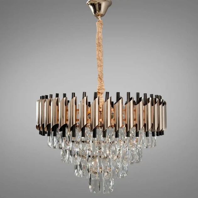 Підвісна кришталева люстра Diasha з регульованою висотою під дев'ять ламп Е14 колір золото/чорна IP20