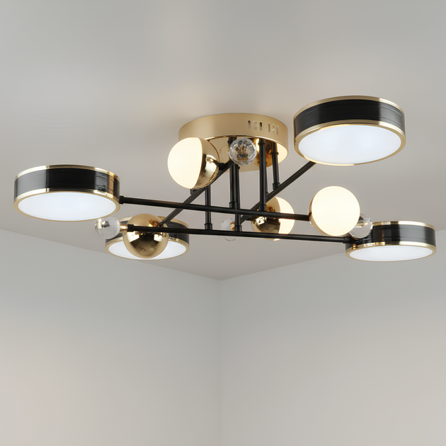 Стельова LED-люстра 117W Sirius B YH1101/4+4 BK+FGD з акриловими плафонами 3000–6500К у чорно-золотому кольорі