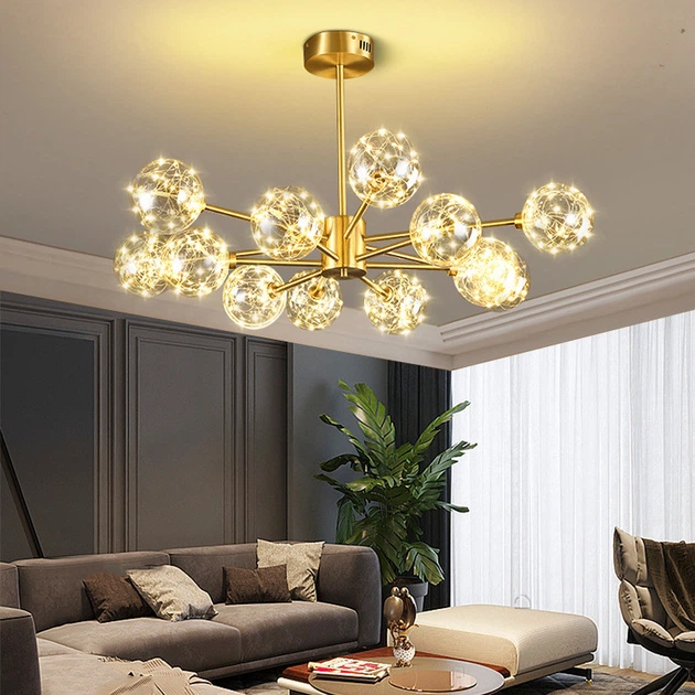 Люстра світлодіодна стельова LED світильник для квартири на стелю лед 26372 Латунь 42-72х110х110 см.