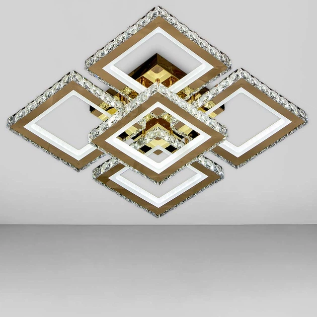 Люстра стельова світлодіодна Light House SY-18532/4+1 FG DIMMER 500*500*H160 296W, колір золото
