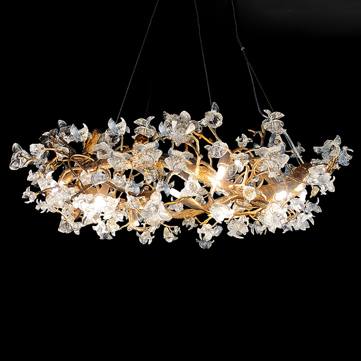 Підвісна люстра FLORIAN L L180 від бренду DEPRIMO створена для тих, хто цінує ексклюзивний та стильний інтер'єр. Ця люстра поєднує в собі елегантність арт-деко, витонченість флористики та натуральність еко-стилю. Ширина підвісної люстри складає 650 мм, а висота – 600 мм. Вона оснащена LED-лампами та галогеновими лампами з цоколем G9, які не входять до комплекту. Підтримується напруга живлення