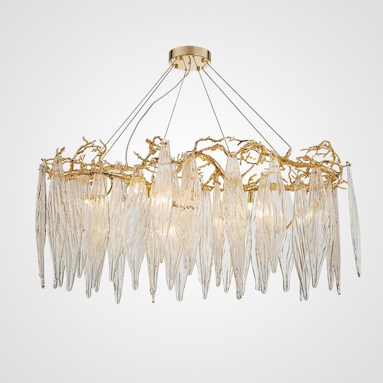 Підвісна люстра ELISHA D105 від бренду DEPRIMO - це елегантний та стильний освітлювальний пристрій, створений у сучасному стилі з елементами флористики. Люстра має ширину 1050 мм та висоту 250 мм, що дозволяє ідеально вписатися в інтер'єр різних приміщень. Люстра оснащена LED-лампами, які забезпечують яскраве та енергоефективне освітлення. Також можливе використання галогенових ламп із