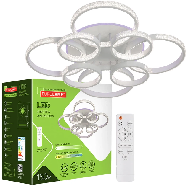 Люстра стельова Eurolamp LED M19 120W 11250 Lm 3000-6500K (LED-LR-150-M19(white))