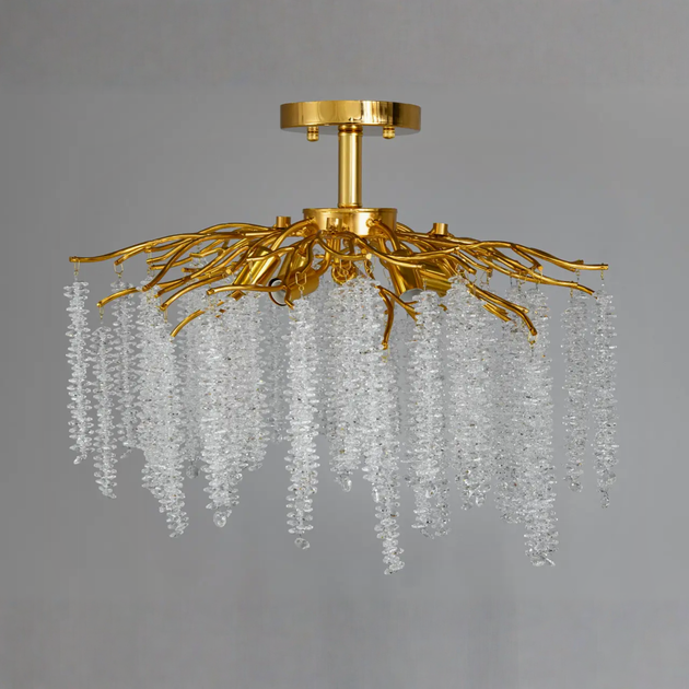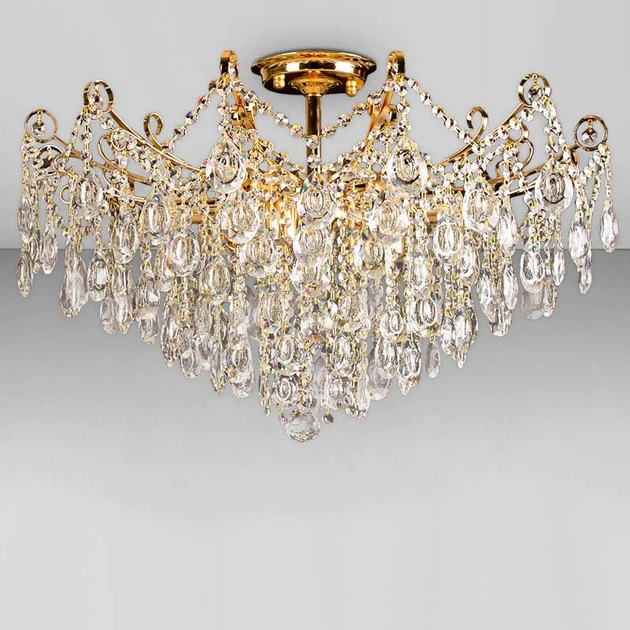 Стельова люстра Diasha з кришталевими підвісами під сім ламп Е14 золотого кольору IP20