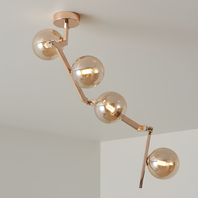 Люстра стельова VALESO BX84020-4 GD із чотирма кулястими плафонами під лампи E14 на регульованому корпусі золотого кольору